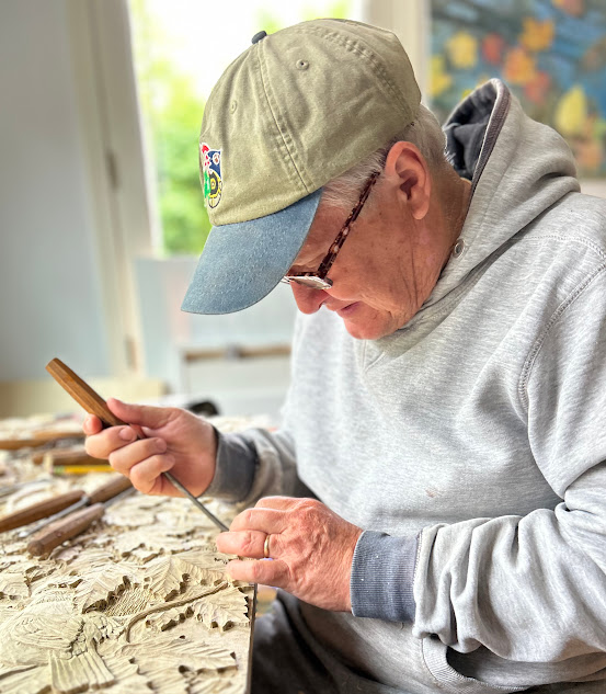 After working as a designer and illustrator for two years, Gary started his own sign business. This venture allowed him to explore hand-carved wooden signs, blending his love for nature with his artistic abilities. Initially working with pine, he soon transitioned to using mahogany, drawn by its rich colors and unique qualities. Over time, he developed a preference for carving in walnut, ash, and cypress, finding these woods more conducive to his intricate, three-dimensional designs.